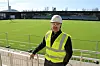 En stund senare står vi och blickar ut över Karlebys nya fotbollsstadion.